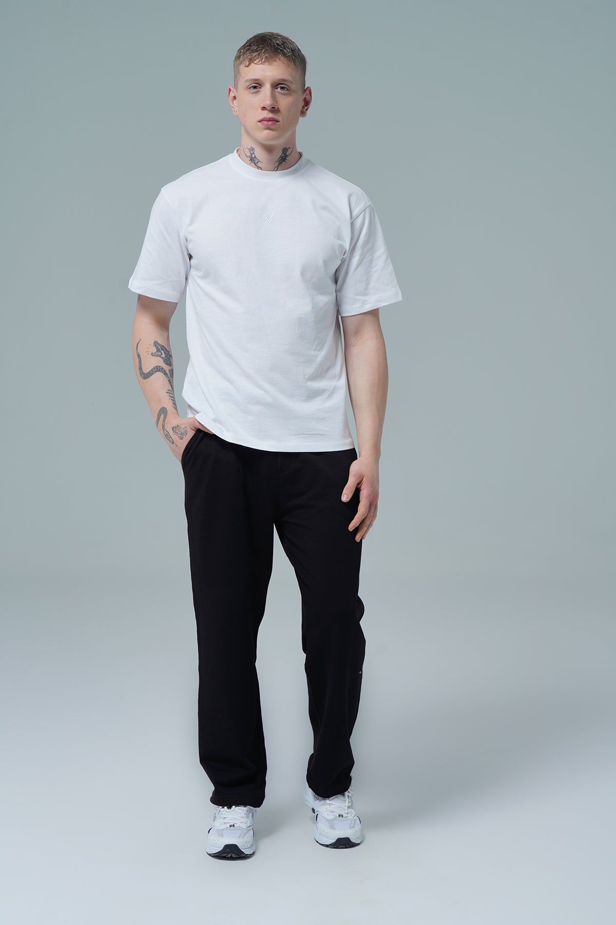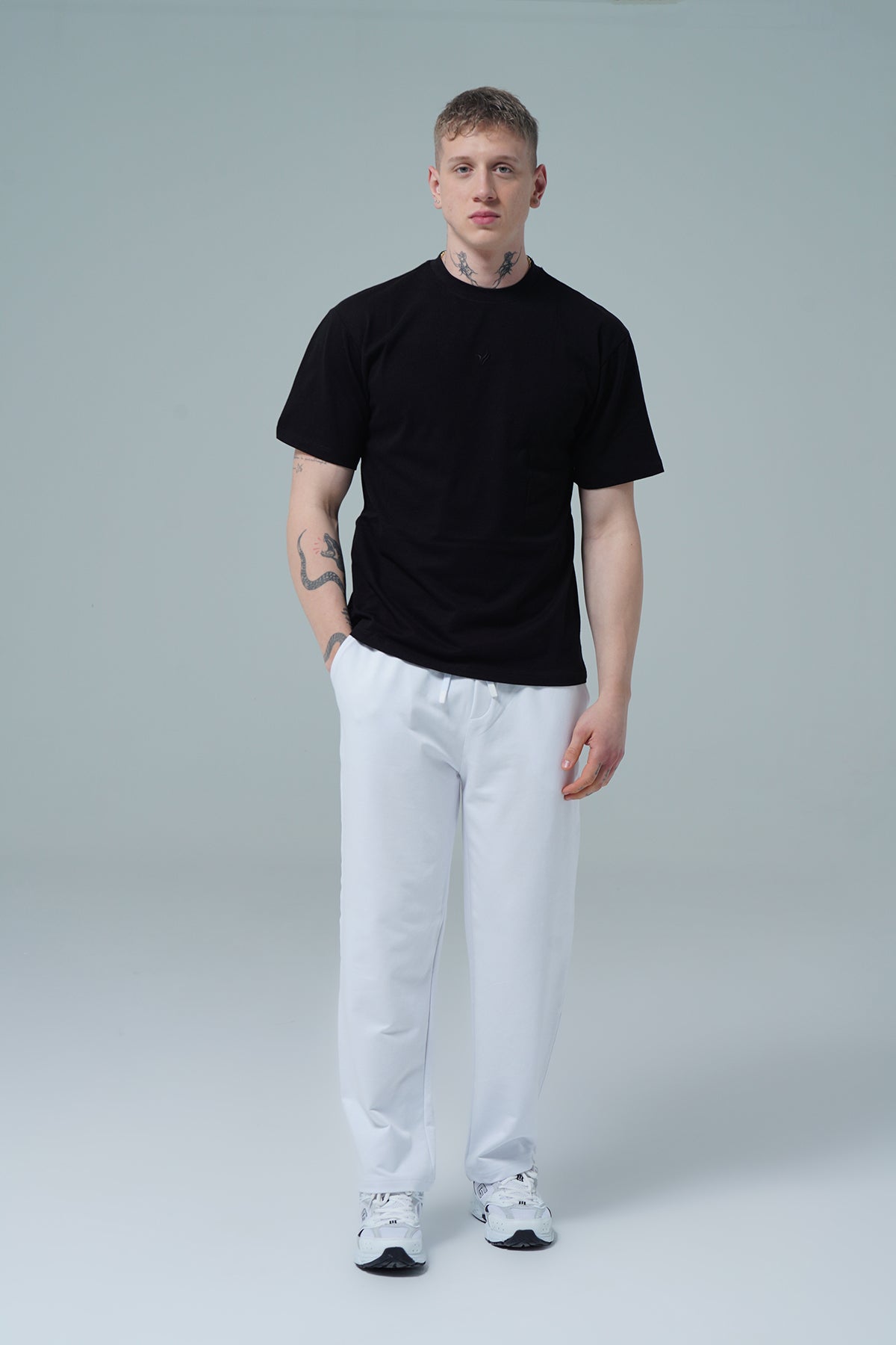 Daily Core - Beyaz Rahat Kesim Erkek Boru Paça Eşofman Altı