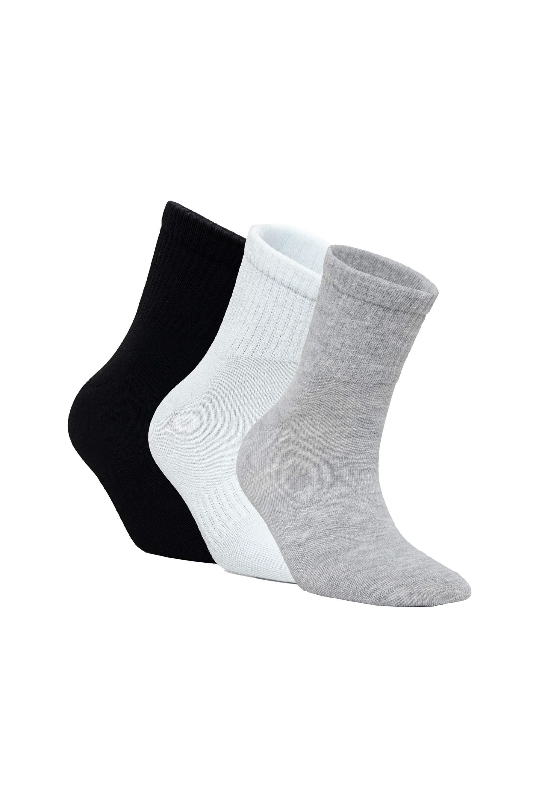 Cloud Socks - Uzun Konç Spor Çorap 3 Çift (Siyah-Beyaz-Gri)