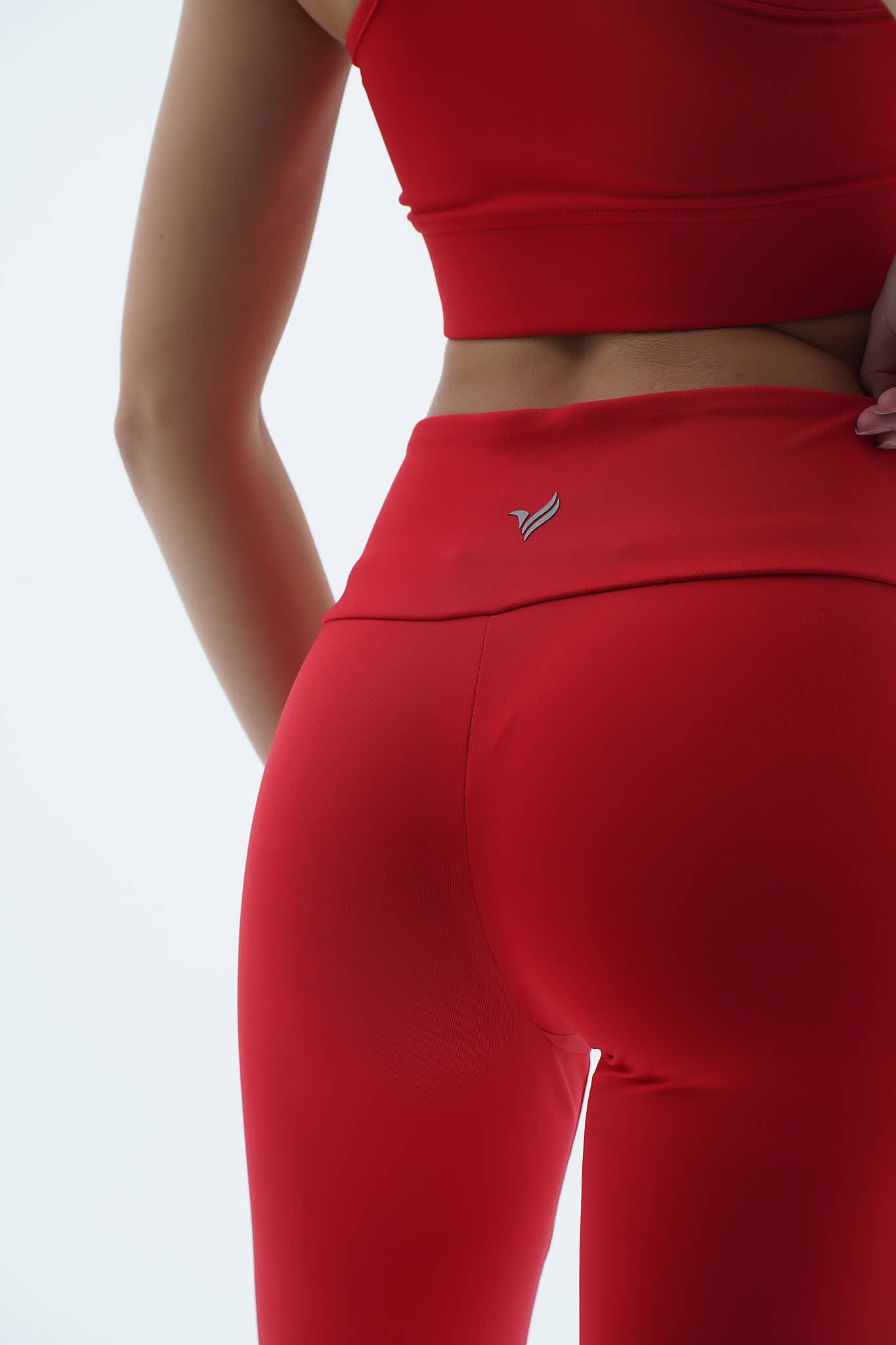 Aero Motion - Kırmızı Yüksek Bel Push-Up Toparlayıcı İspanyol Paça Tayt