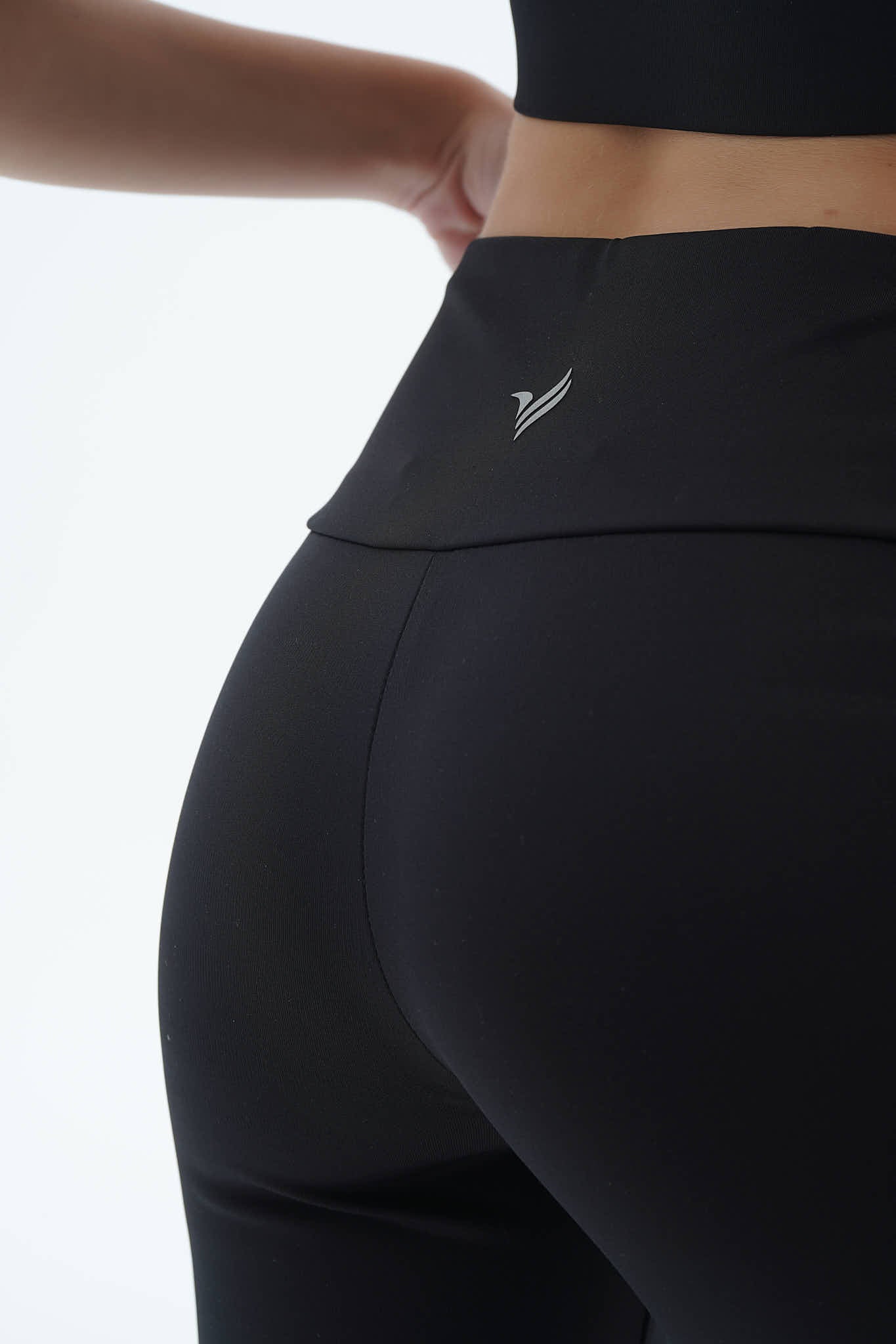 Aero Motion - Siyah Yüksek Bel Push-Up Toparlayıcı İspanyol Paça Tayt